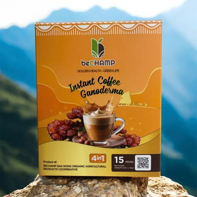 Cà phê nấm linh chi hòa tan Bechamp là sự kết hợp hoàn hảo giữa cà phê honey nguyên chất rang xay và bào tử nấm linh chi quý hiếm, mang đến cho bạn thức uống thơm ngon, bổ dưỡng, tốt cho sức khỏe.