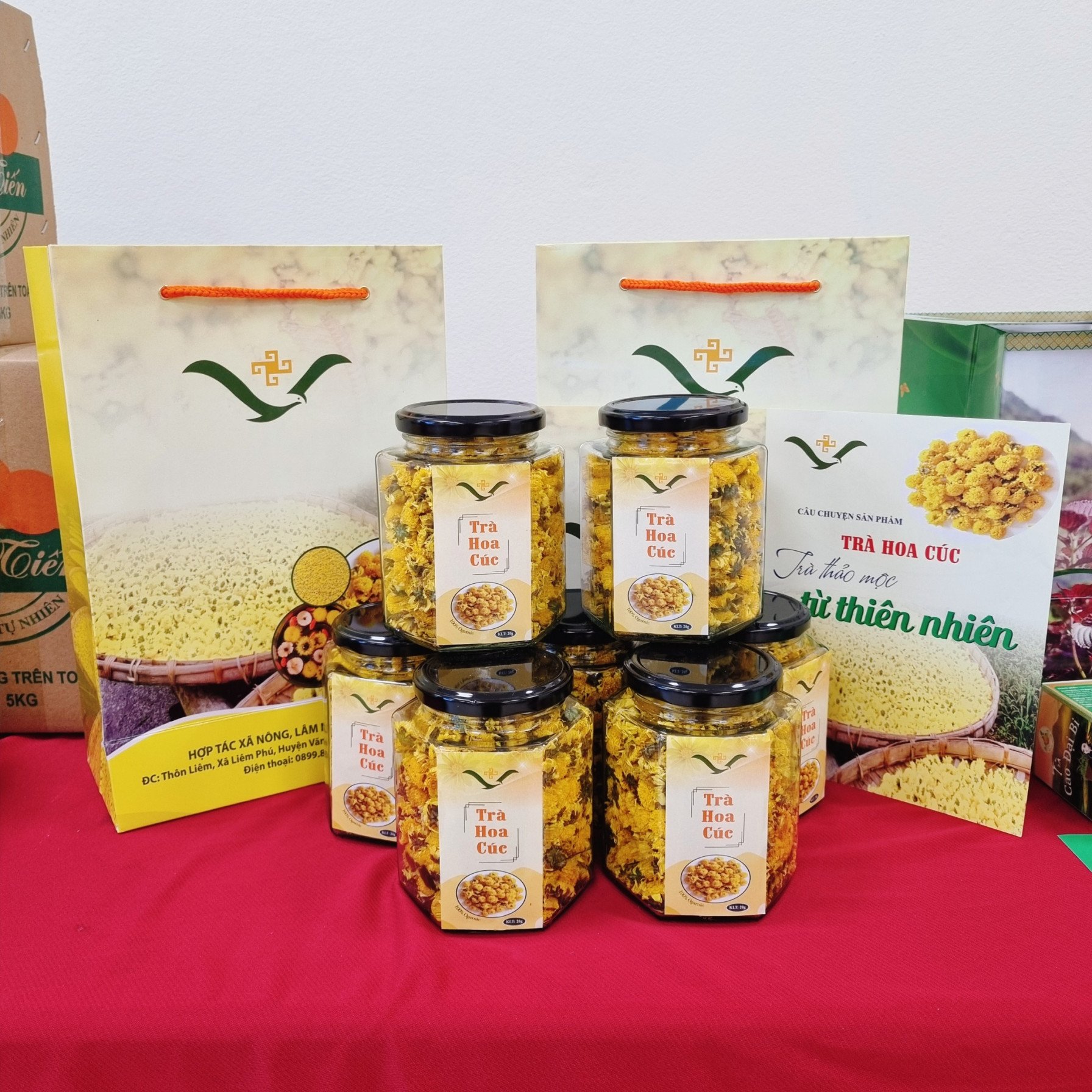 Trà Hoa Cúc là sản phẩm OCOP 3 sao của HTX Vạn An. Trà có thành phần là hoa cúc sấy khô theo phương pháp sấy lạnh bảo toàn được tinh chất trong hoa. Do được canh tác tự nhiên ở vùng núi cao nên trong hoa chứa nhiều dược chất quý giá đối với sức khoẻ và sắc đẹp người dùng.